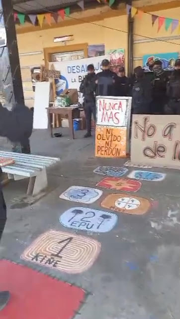 El Bolsón (ANPP).- Como venimos cubriendo desde Prensa del Pueblo, la situación de la Biblioteca de Arte y Cultura Popular de La Estación en Fiske, se viene complicando por el ensañamiento y la persecusión que realiza la intendenta de esa localidad rionegrina. María Emilia Soria dispuso un desalojo sin mediar diálogo con quienes ocupan la biblioteca desde hace ya más de doce años. Cuando el escándalo salió a la luz por la movilización de las organizaciones y vecines, la respuesta fue que se estaba proponiendo una reubicación. Pero los hechos hablan por sí solos. Un día la biblioteca amaneció vacía, y con trabajadores municipales pintándola. La asamblea que cordina las actividades en este espacio de cultura e identidad, decidieron volver a entrar, aprovechando que las puertas se encontraban abiertas. Entonces la intendenta radicó una denuncia por usurpación. Denuncia que bien podrían haber hecho la asamble a la intendenta y sumándole la de hurto y tantas otras cuestiones, ya que se empleó personal municipal para realizar dicha acción. Pero la intención de la asamblea es la de dar continuidad a las actividades que allí se desarrollan. Desde hace algunos días, apareció personal policial en los alrededores, y hoy por la mañana una treintena de policías se apostaron frente a la puerta y comenzaron a intentar entrar a la fuerza. No lo lograron. Allí se presentó la abogada de la asamblea, quien pudo revisar la orden de allanamiento que llevaba la policía, tras lo cual se habilitó la entrada pacífica de la misma, quien registró los datos de las personas que se encontraban al interior. La Asamblea continúa organizada y con eventos programados para acompañar el sostenimiento de este espacio público de cultura, arte e identidad. Compartimos lo que comentaba la abogada hoy por la mañana: